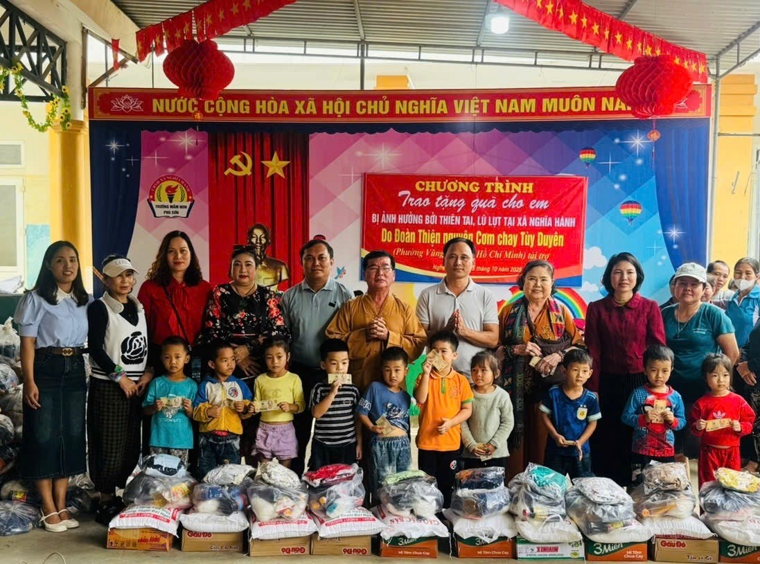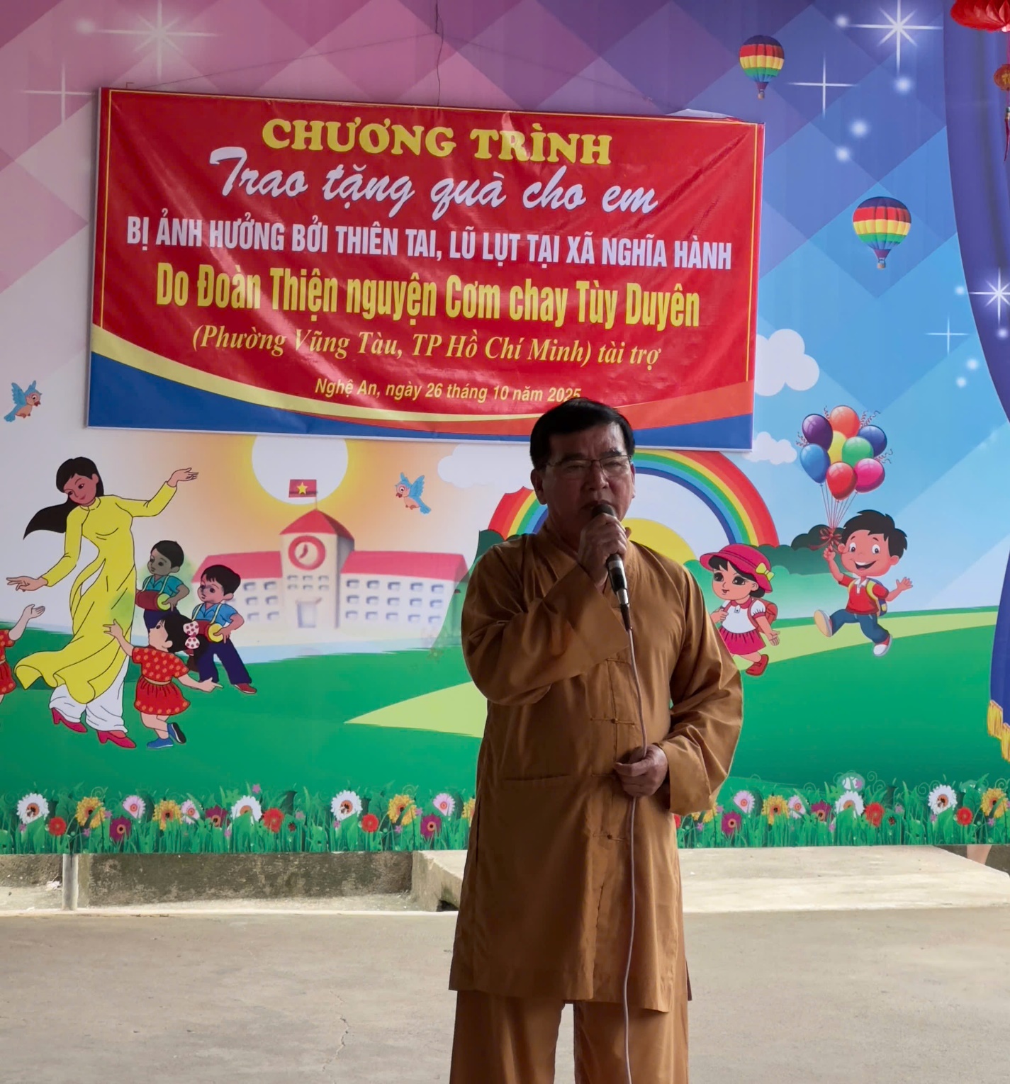 Ngày 26/10/2025, Đoàn Thiện nguyện Cơm chay Tùy Duyên (phường Vũng Tàu, TP. Hồ Chí Minh) phối hợp với Quỹ Bảo trợ trẻ em tỉnh Nghệ An tổ chức chương trình trao quà cho các hộ gia đình có trẻ em hoàn cảnh khó khăn tại Trường Mầm non Phú Sơn, xã Nghĩa Hành.