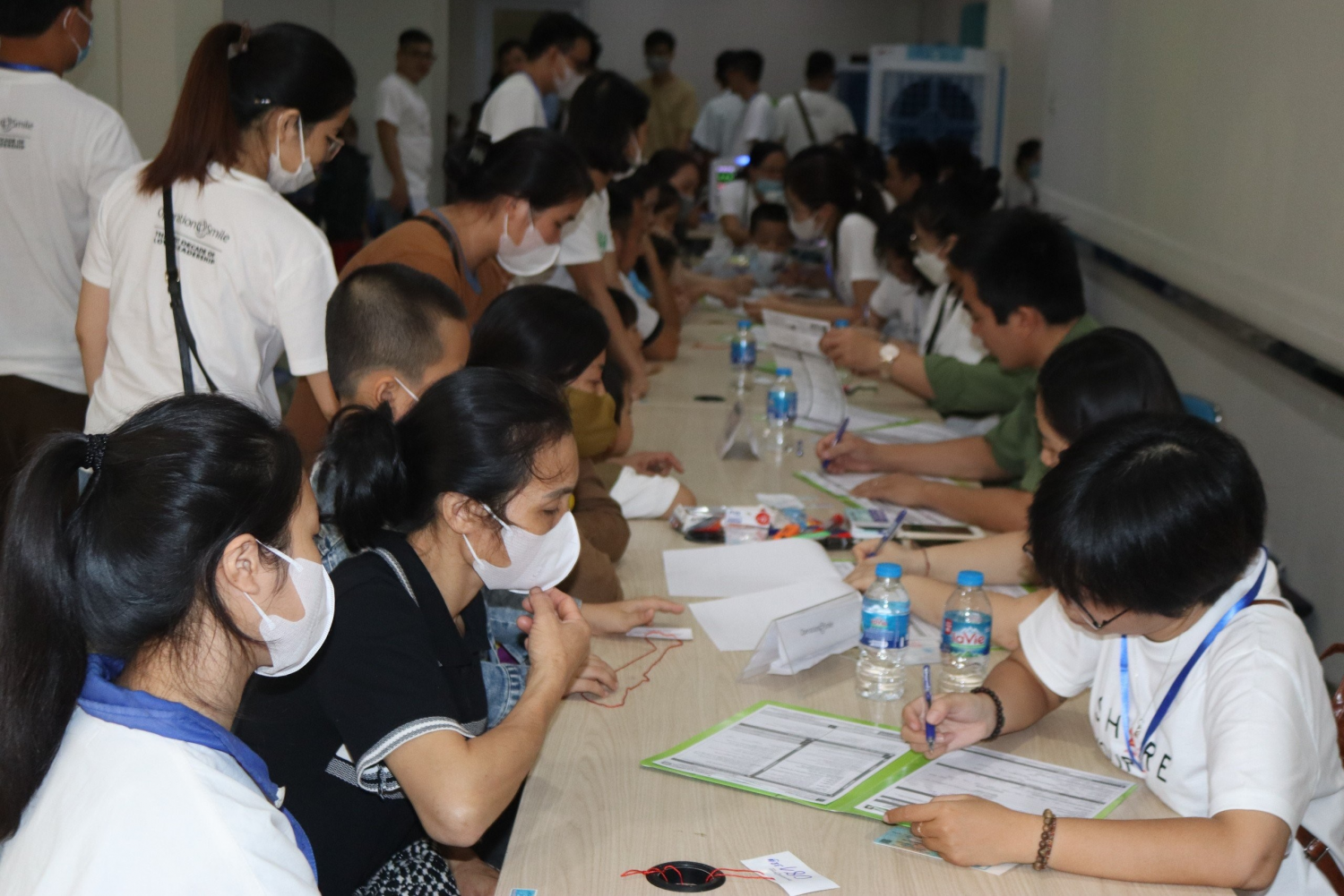 Tình nguyện viên hỗ trợ làm hồ sơ, hướng dẫn người nhà của trẻ