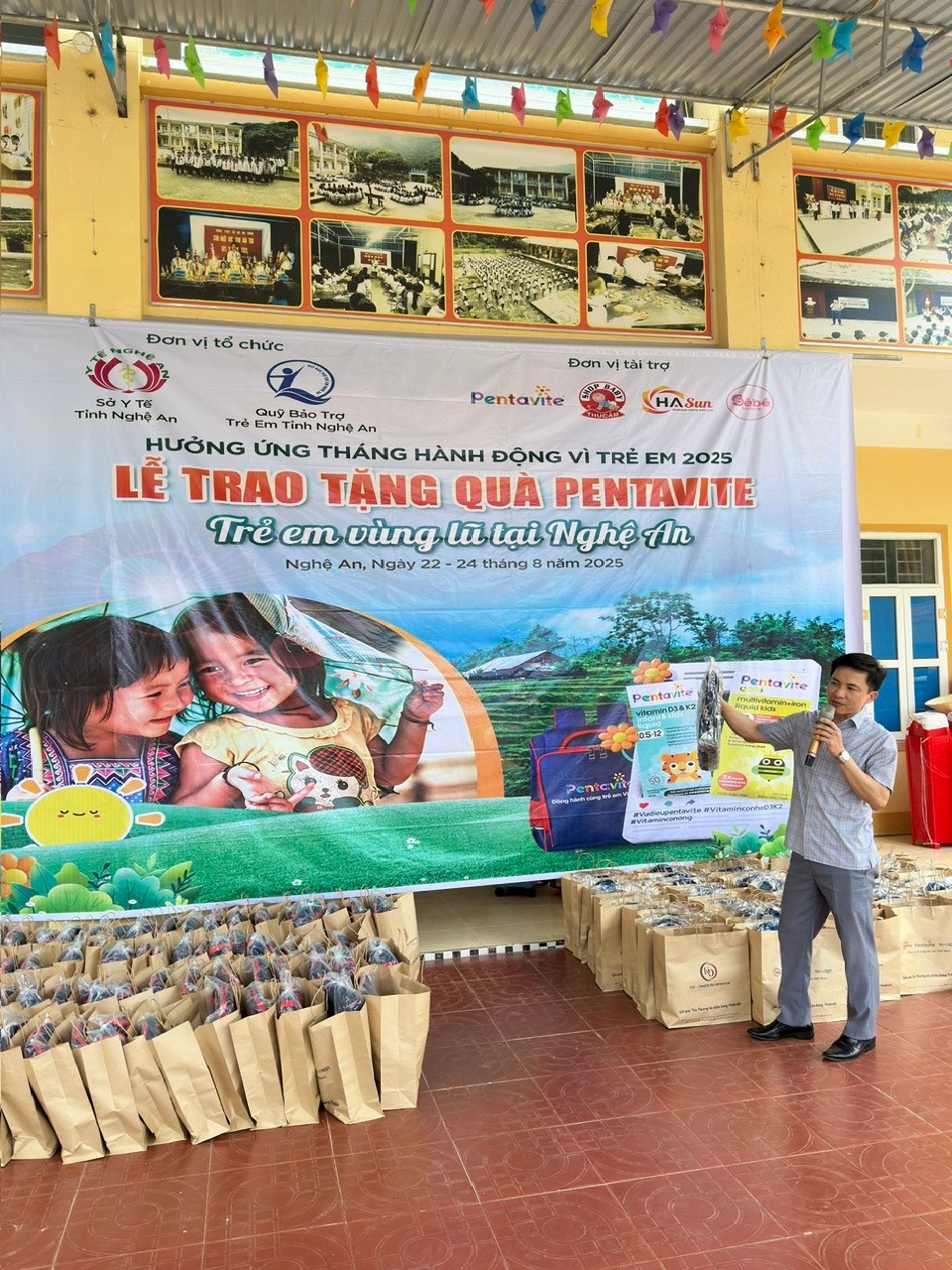 Mỗi suất quà trị giá 1,15 triệu đồng, gồm 1 ba lô học sinh và 2 lọ vitamin bổ sung dinh dưỡng, với tổng giá trị gần 1,5 tỷ đồng. Chương trình có sự đồng hành của Công ty TNHH DP Hasun Health Việt Nam, Công ty CP sản xuất kinh doanh thương mại xuất nhập khẩu KĐ – nhà phân phối độc quyền nhãn hàng Pentavite tại Việt Nam, hệ thống Shop Baby Thu Cầm và hệ thống Shop Bébé Store.