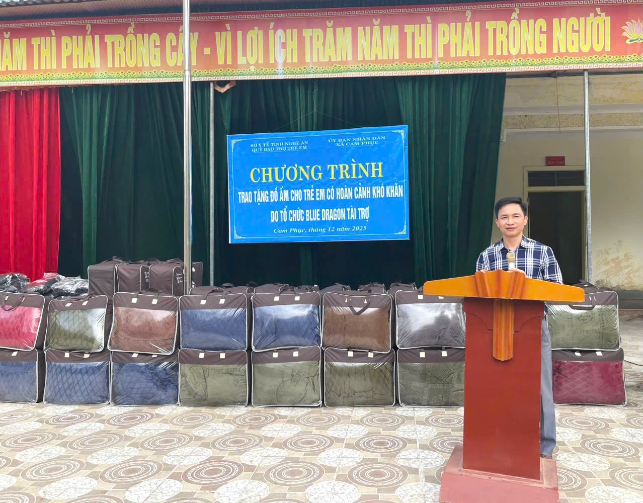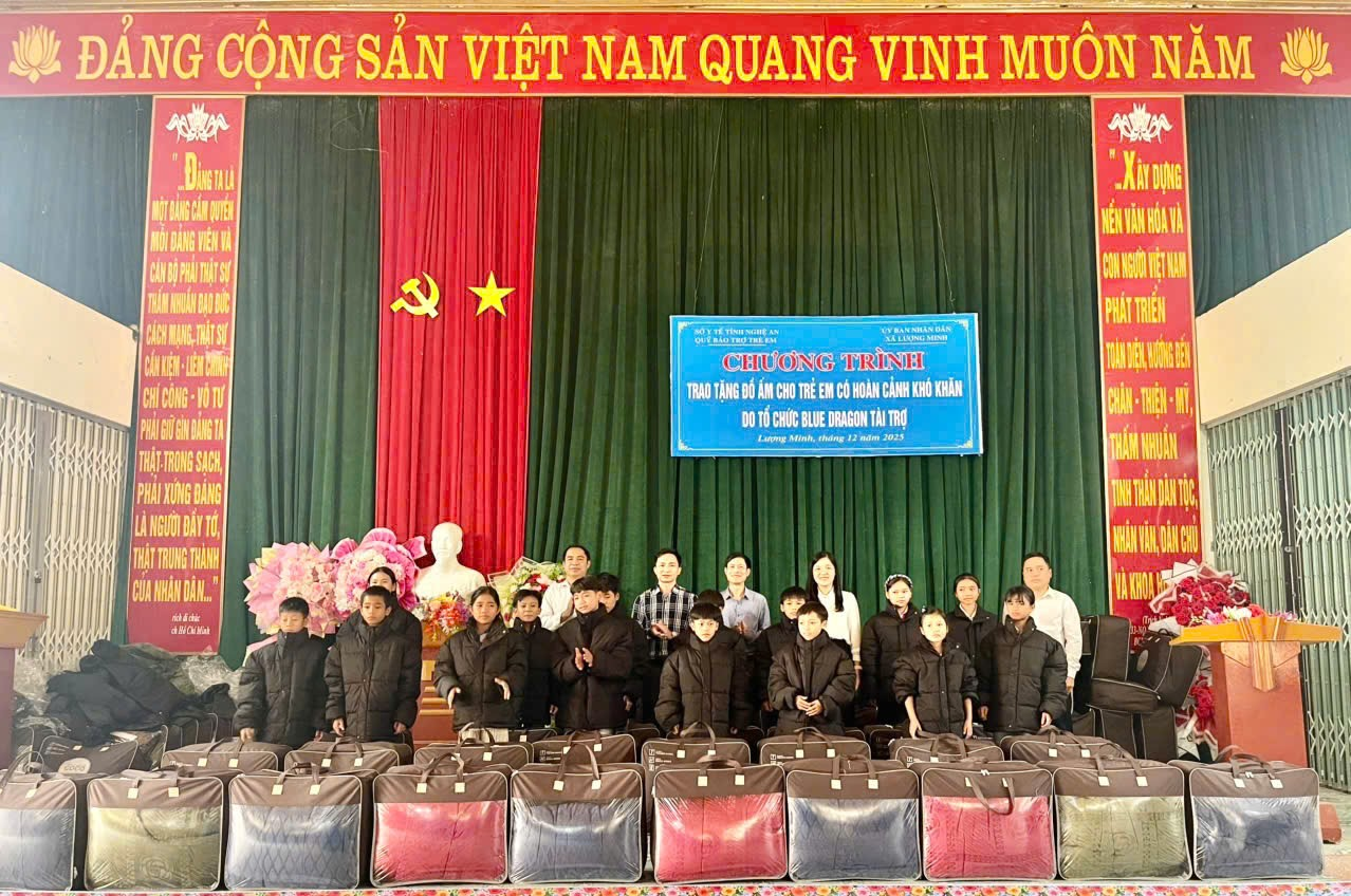 Ngày 22/12/2025, Quỹ Bảo trợ trẻ em tỉnh Nghệ An phối hợp với Tổ chức Blue Dragon (Trẻ em Rồng Xanh) tổ chức chương trình “Áo ấm mùa đông”, trao tặng đồ ấm cho trẻ em có hoàn cảnh khó khăn tại xã Cam Phục và xã Lượng Minh.
