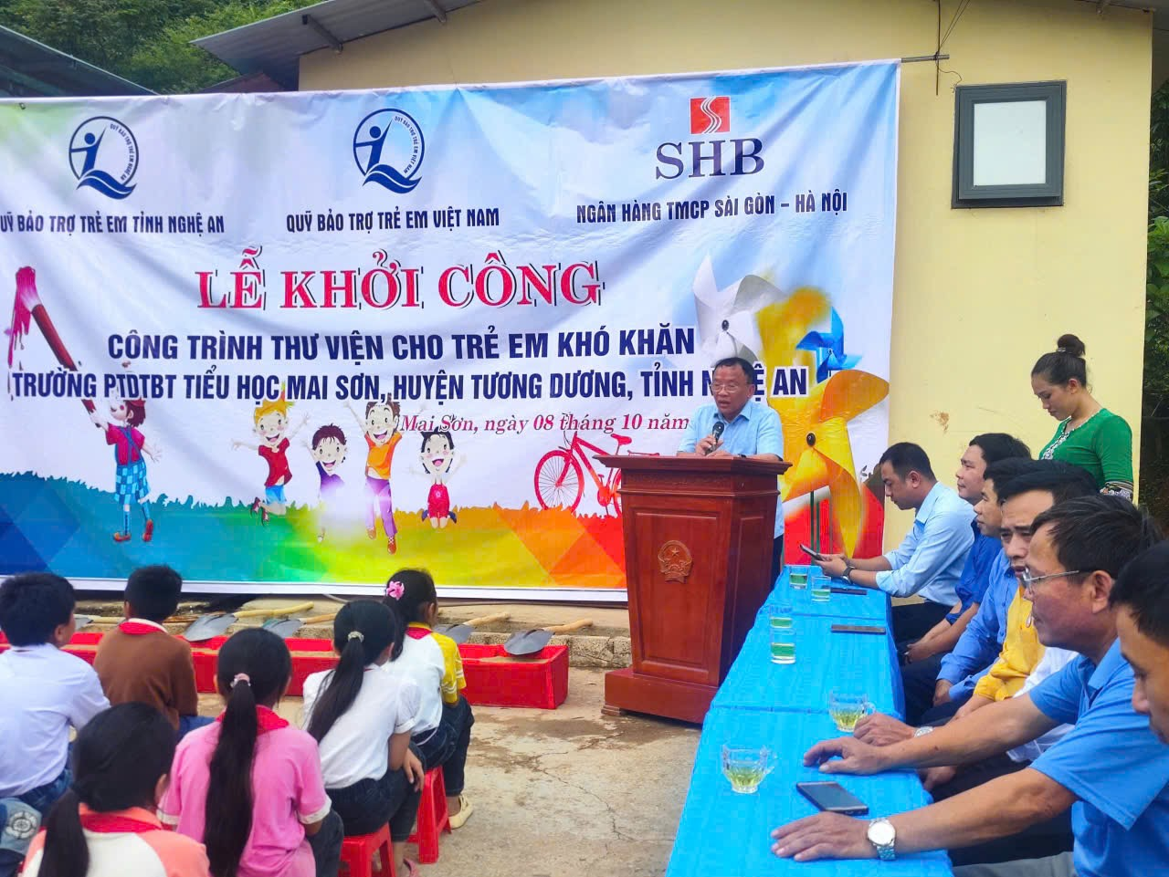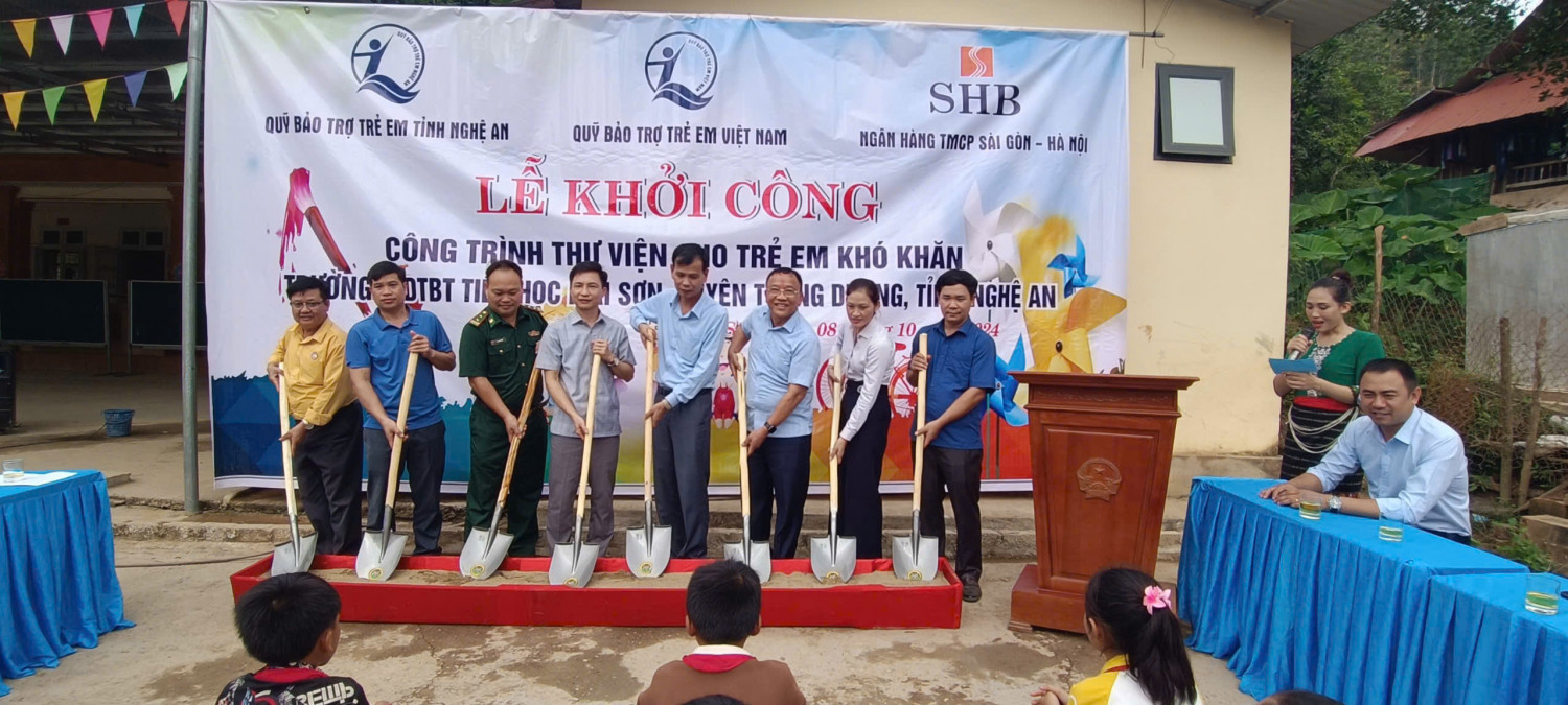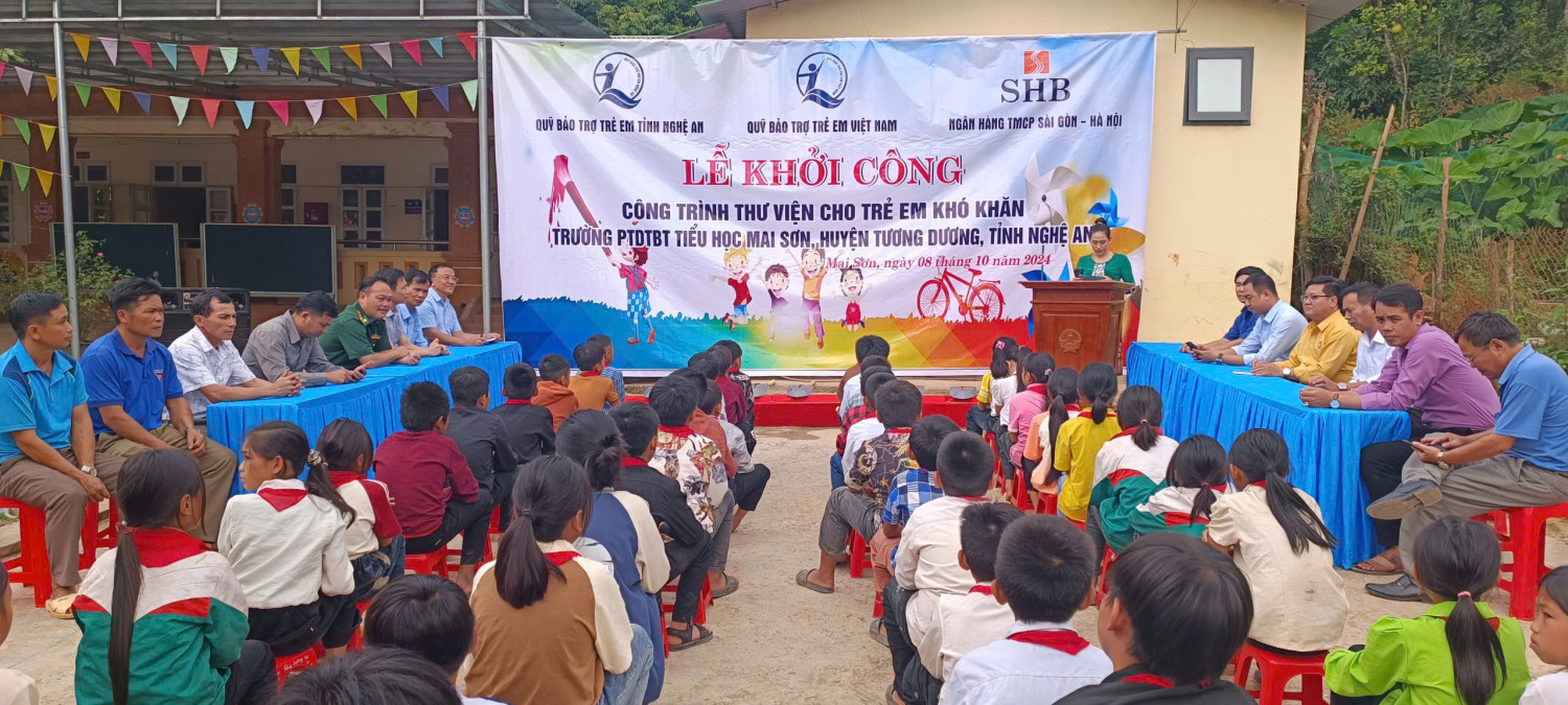 Sáng ngày 08/10/2024, tại Trường Phổ thông Dân tộc Bán trú (PTDTBT) Tiểu học Mai Sơn, Quỹ Bảo trợ trẻ em tỉnh Nghệ An phối hợp với Ủy ban nhân dân huyện Tương Dương tổ chức Lễ khởi công công trình thư viện dành cho học sinh có hoàn cảnh khó khăn.